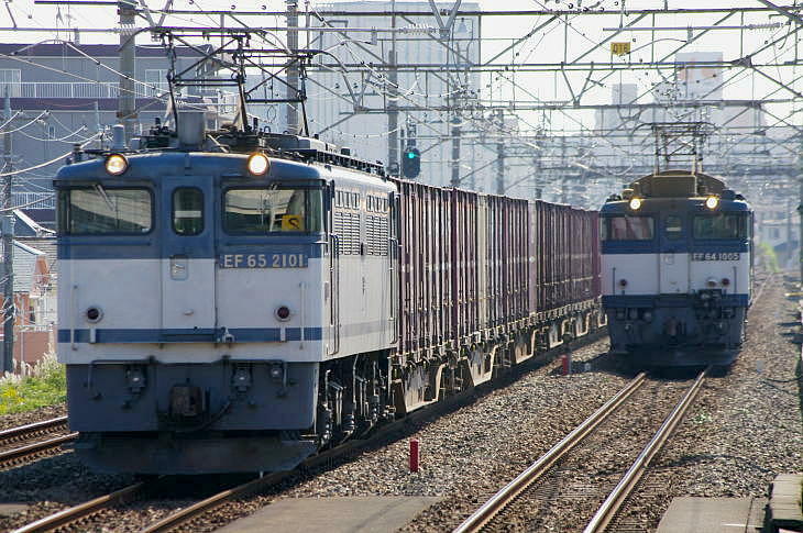 72レ EF65-2101 右は単8175レ EF64-1005 馬橋−南流山(南流山駅から撮影) 平成26年10月18日 |