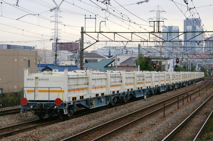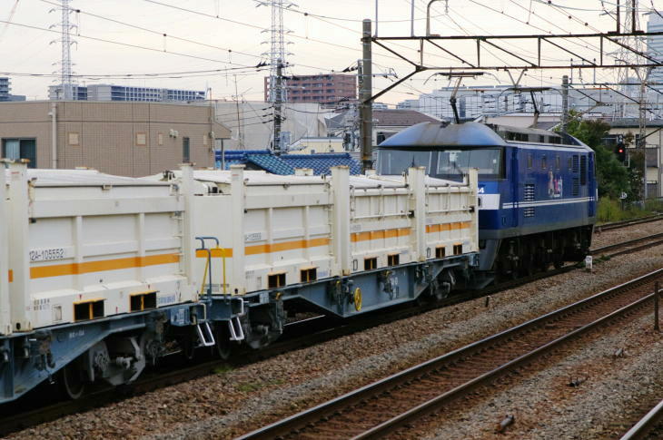 本列車は、リニア新幹線建設によって発生した廃土を、梶ヶ谷貨物ターミナル駅から扇町駅を経て川崎臨海部の三井埠頭まで運ぶ専用貨物列車です。 この残土輸送には専用のUM12Aコンテナが使用されています。 残土輸送は、平成29年5月26日から始まりました。 幾度かの長期運休期間がありましたが、工事が完了するまでは、運転されると思われる列車です。 牽引機は新鶴見機関区のEF65でしたが、令和4年3月のダイヤ改正から、新鶴見機関区のEF210になりました。