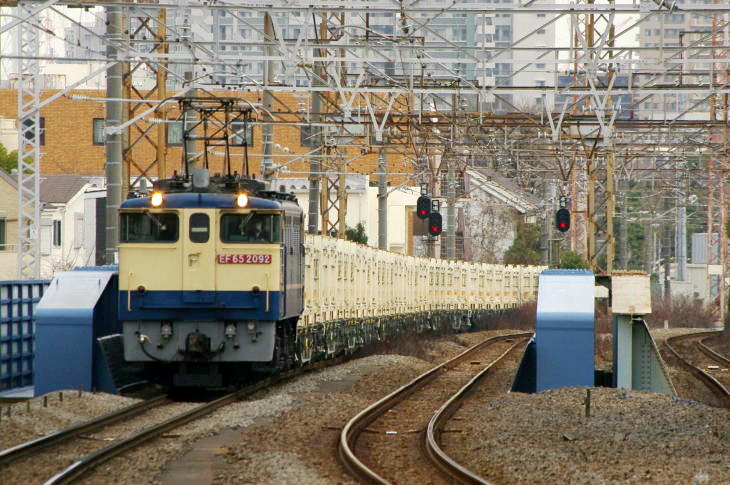 | 8157レ EF65-2092(新鶴見A174運用の代走) 川崎新町−八丁畷(八丁畷駅から撮影) 令和8年2月20日 |