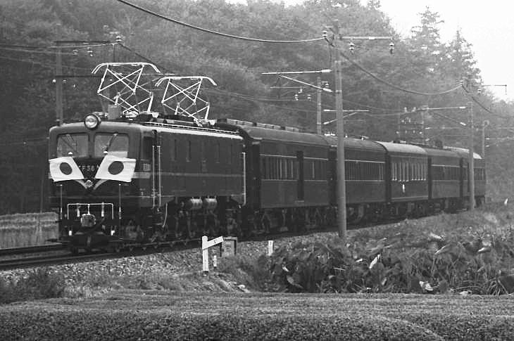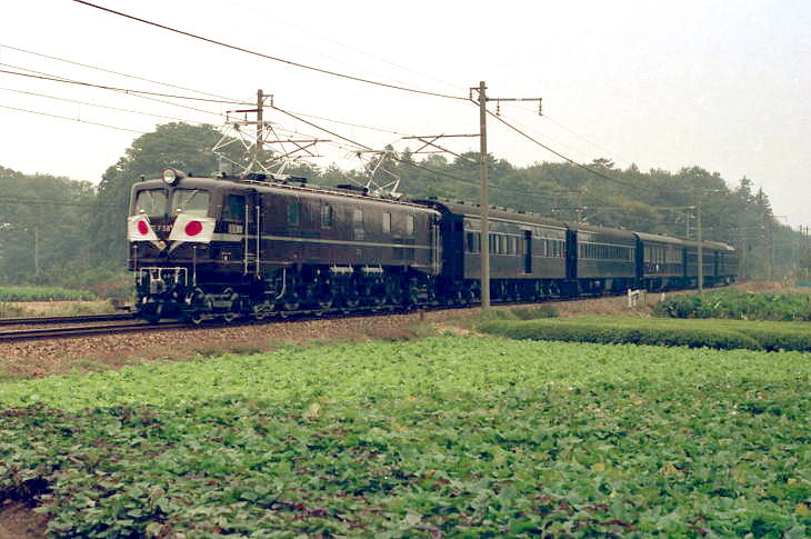 昭和55年に栃木県で、第35回国民体育大会「栃の葉国体」が開催されました。 栃の葉国体ご臨席および県内事情ご視察のため、昭和55年10月11日から天皇皇后両陛下は栃木県に行幸されました。 これに伴い、EF58-61が牽引する1号編成の御召列車が昭和55年10月11日に運転されました。