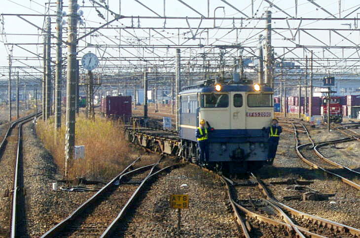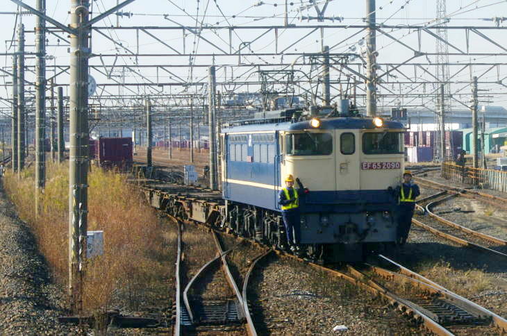 | 越谷貨物ターミナルで入れ替え中の75レ EF65-2090 (走行中の普通列車内から撮影) 令和7年12月17日 |
