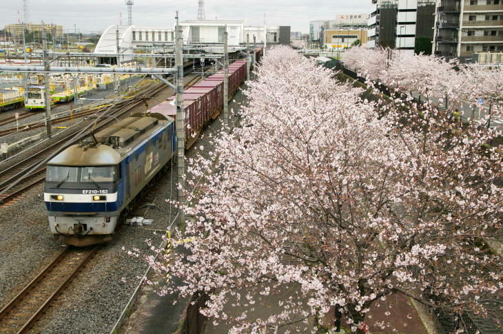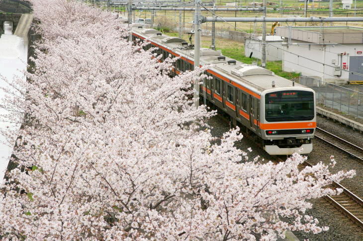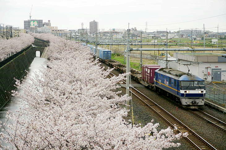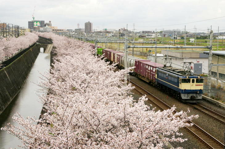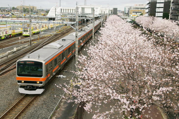 令和8年の冬は1月下旬から厳しい寒さが続きましたが、2月中旬になると暖かい日多くなり、東京の桜は平年より5日早い3月19日に開花し3月28日に満開が発表されました。 千葉県東葛地域とその隣接地域は、東京より4日ほど遅く開花しました。 しかし、開花後は曇や雨の日が続き桜とお目当ての列車を撮影するチャンスはあまりありませんでした。 4月1日(水)にようやく撮影チャンスができ、武蔵野線の吉川美南に出かけました。 この日はPF祭りが開催されていました。 桜はほぼ満開でしたが、天気はどん曇りで昼前から雨が降り出しました。 また、風が強く寒い1日でした。 そんな悪条件でも、約20人のファンが集まり、PF祭りは大盛況でした。
